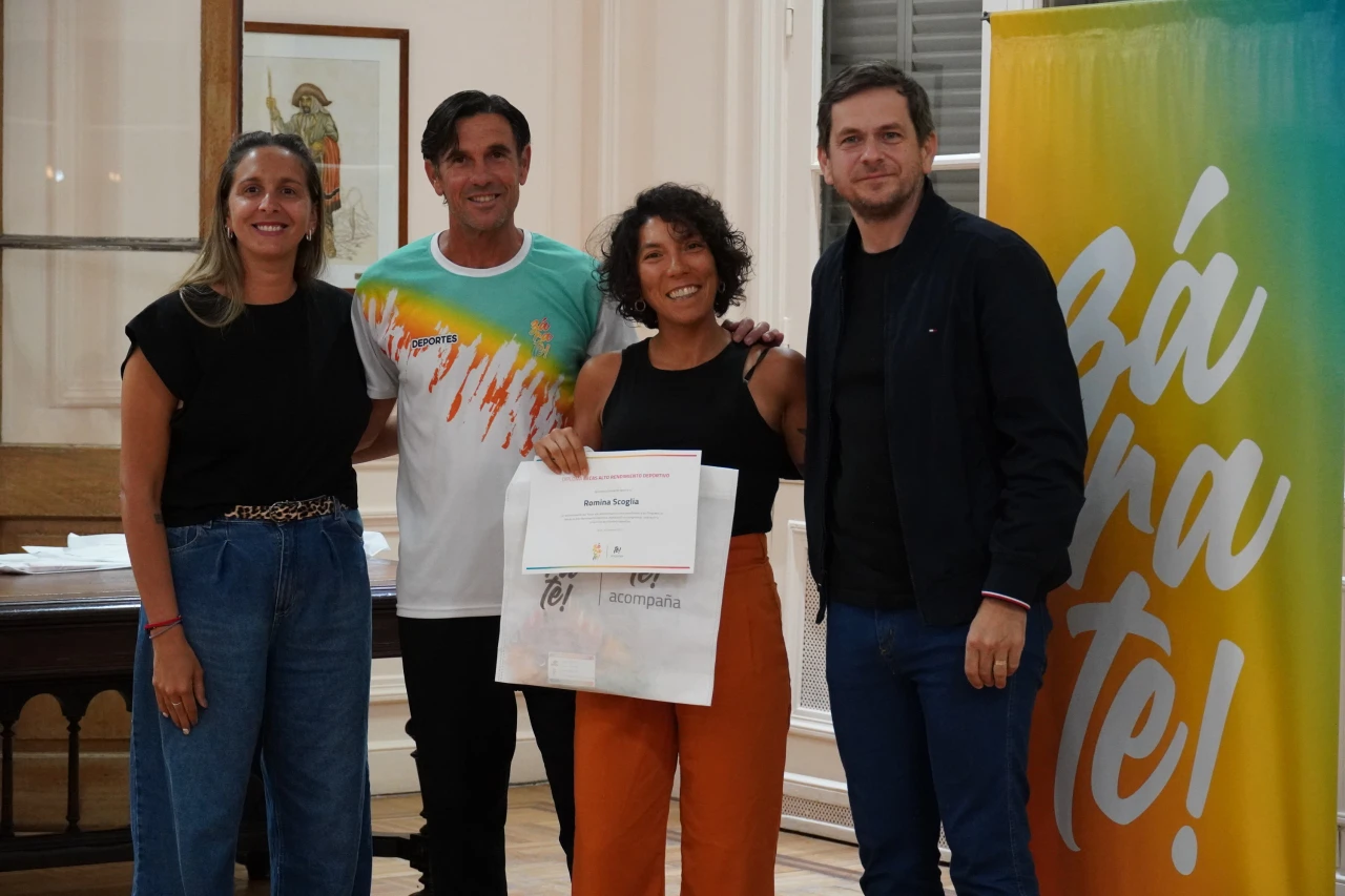 Acompañaron al intendente durante la entrega, la secretaria de Educación y Deporte, Stefanía Rodríguez Schatz y el subsecretario de Deporte, Diego Marquine.