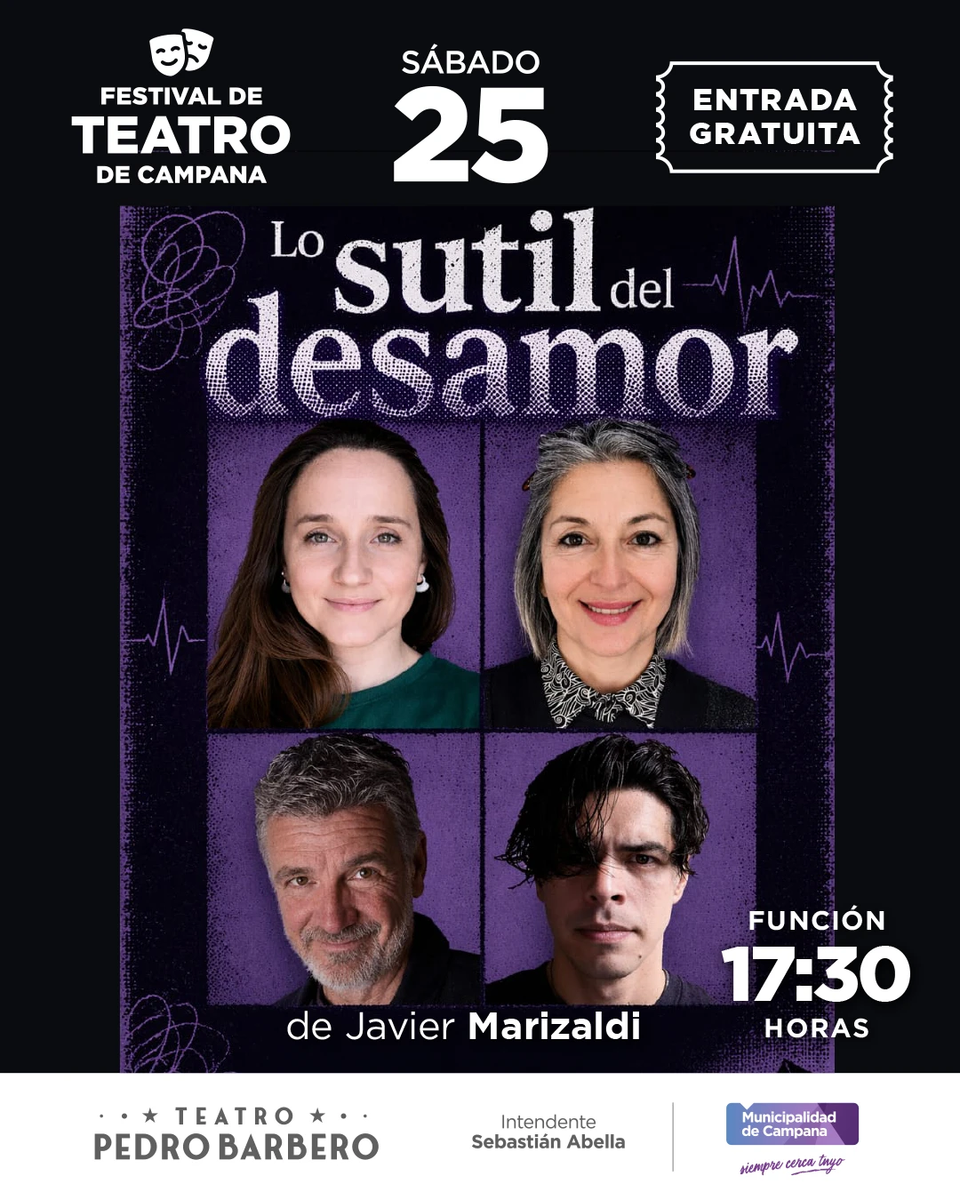 - Javier Marizaldi: Pondrá en escena la obra “Lo Sutil del Desamor” el sábado a las 17:30 hs en la sala doble del segundo piso. Los tickets se reparten desde las 16:30 hs.