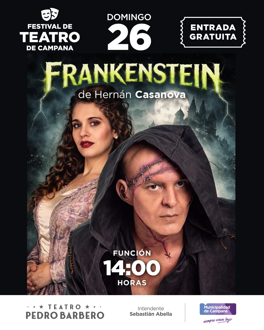 - Hernán Casanova: Se sumará el domingo 26 con su espectáculo “Frankenstein” a las 14:00 hs en la sala principal del Pedro Barbero. Las entradas se entregarán a las 13:00 hs.