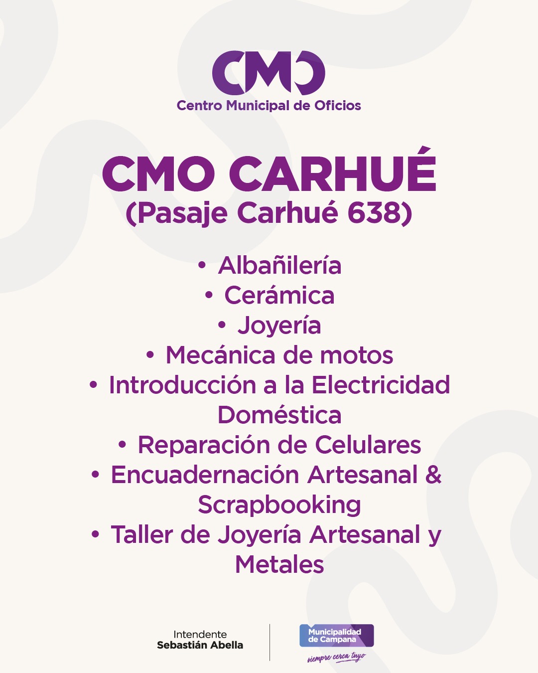 Dando continuidad a las acciones para fortalecer la capacitación laboral y brindar más herramientas de desarrollo personal a los vecinos, el Municipio lanza una nueva inscripción a los cursos gratuitos del Centro Municipal de Oficios (CMO).