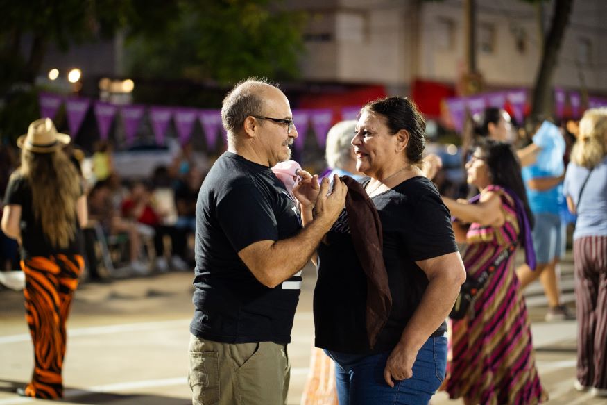 La Plazoleta del Tango volvió a vibrar con una milonga abierta al público. Este encuentro formó parte de un ciclo dedicado al 2x4 organizado por la Municipalidad, contando con las actuaciones de solistas locales y el despliegue artístico de la compañía “Raíces Nuestras”.