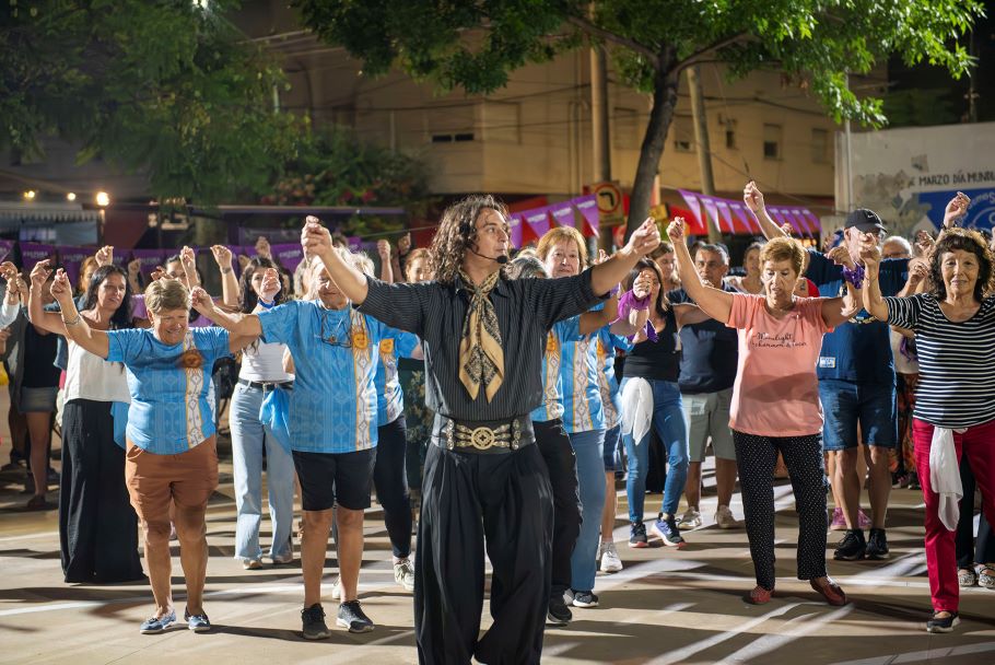 La propuesta se completó con una clase abierta de folklore a cargo del profesor Nahuel Moreyra, que invitó a los vecinos a sumarse a la pista, y con un patio gastronómico y feria de artesanos.
