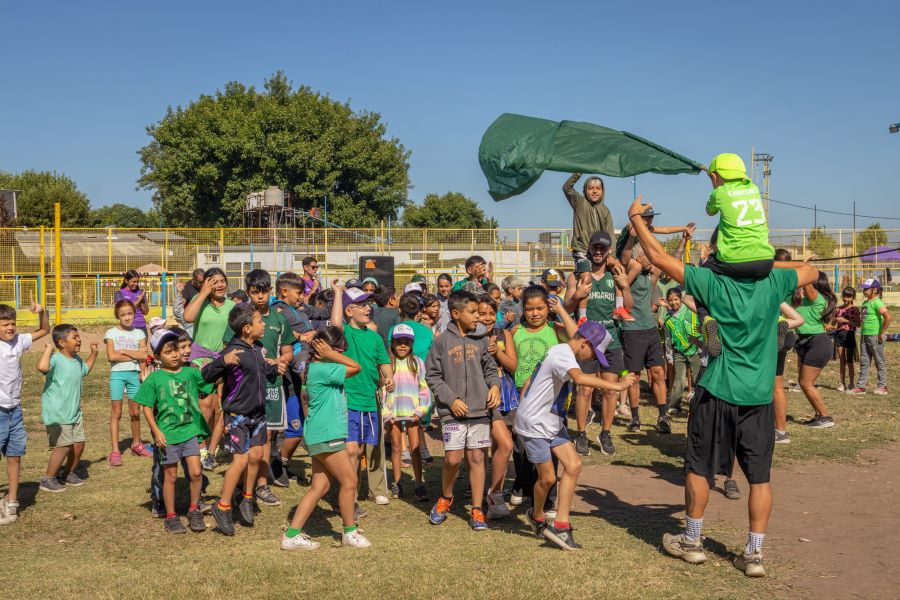 Divididos en 4 colores (amarillo, azul, rojo y verde), los niños de entre 6 y 12 años enfrentaron juegos y competencias deportivas con el objetivo de sumar puntos.